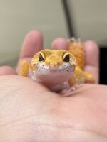 ヒョウモントカゲモドキの「ハイポタンジェリン(Hypo Tangerine)」は、その名の通り、「ハイポメラニスティック」と「タンジェリン」という2つのモルフの特徴を併せ持った品種です。その美しいオレンジ色と、スッキリとした模様が少ない体から、ヒョウモントカゲモドキの中でも非常に人気の高いモルフの一つです。食欲旺盛で、毎日コオロギのSとレパシーフードを完食しています!プリプリの超美個体です!